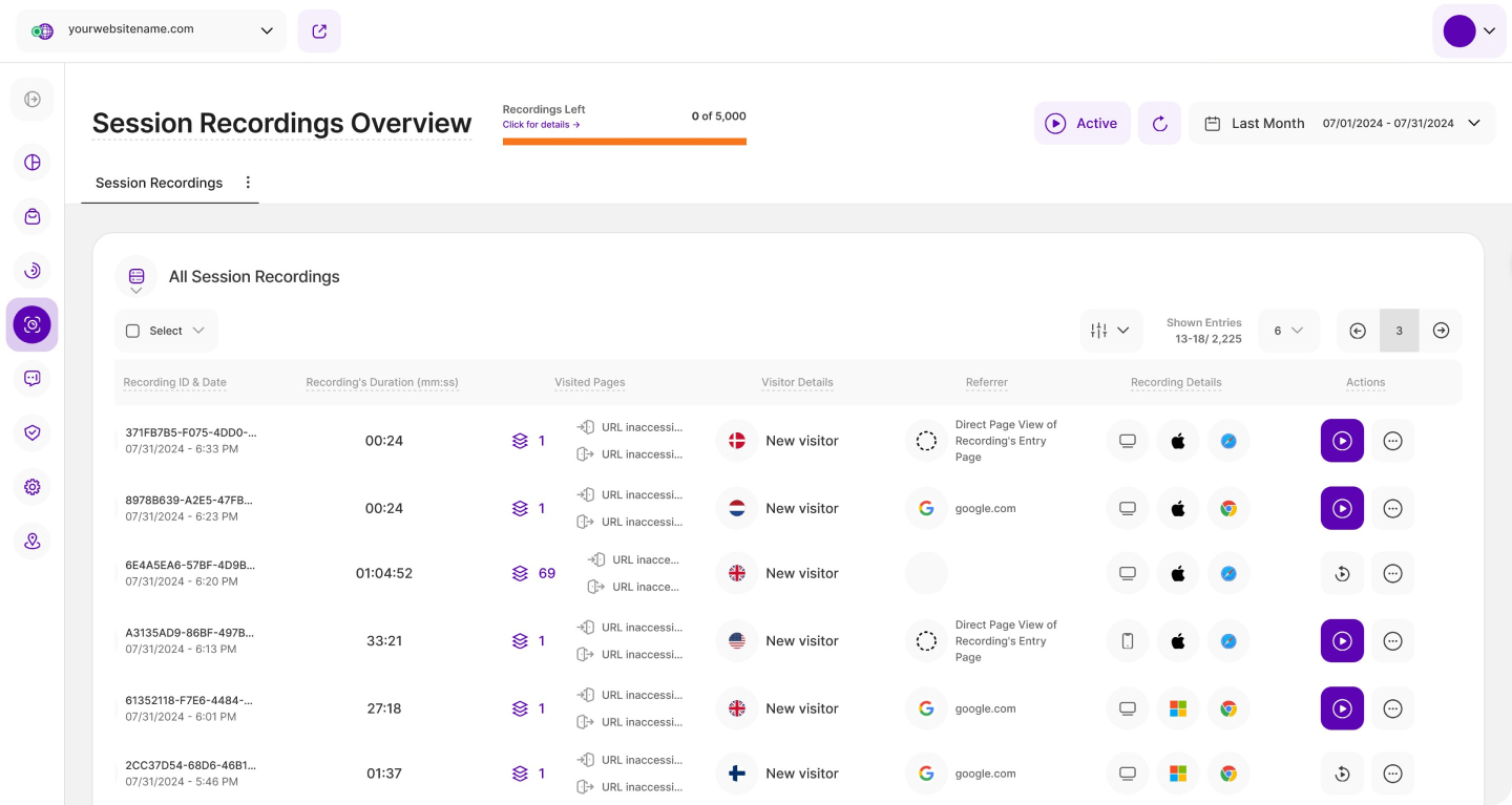 Das Modul enthält 4 Hauptfunktionen, die Ihnen einen tiefen Einblick in das Besucherverhalten auf Ihrer Webseite ermöglichen. Bitte klicken Sie auf eine der Funktionen unten, um einen besseren Einblick in die Funktionalität zu erhalten: