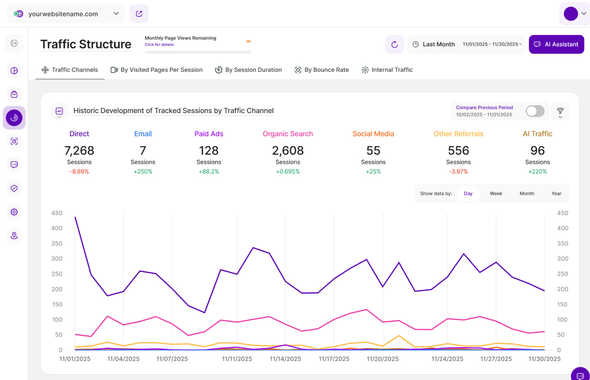 Web-Statistiken, unser grundlegendes Kernmodul, liefert die wesentlichen Daten, die zur Bewertung der Webseiten-Leistung erforderlich sind. Diese Funktionalität ermöglicht die Auswertung wichtiger Metriken und unterstützt die Entwicklung strategischer, datengesteuerter Pläne zur Maximierung des Erfolgs Ihrer Website.