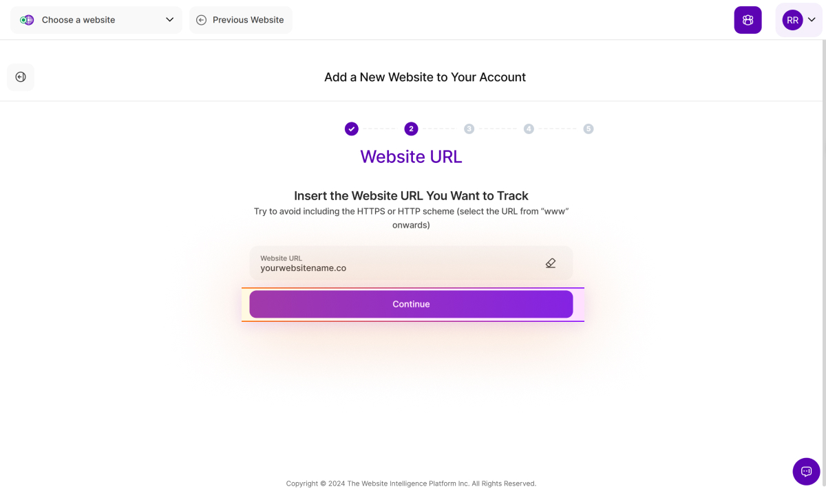 3. Geben Sie die URL der Website ein, für die Sie Daten sammeln möchten. Aus Gründen der Genauigkeit empfehlen wir, die URL direkt aus der Adressleiste Ihres Browsers zu kopieren. Kopieren Sie die URL beginnend mit "www" und lassen Sie das Protokoll (HTTP/HTTPS) weg. Auf diese Weise können Sie sicherstellen, dass die URL vollständig und korrekt ist.