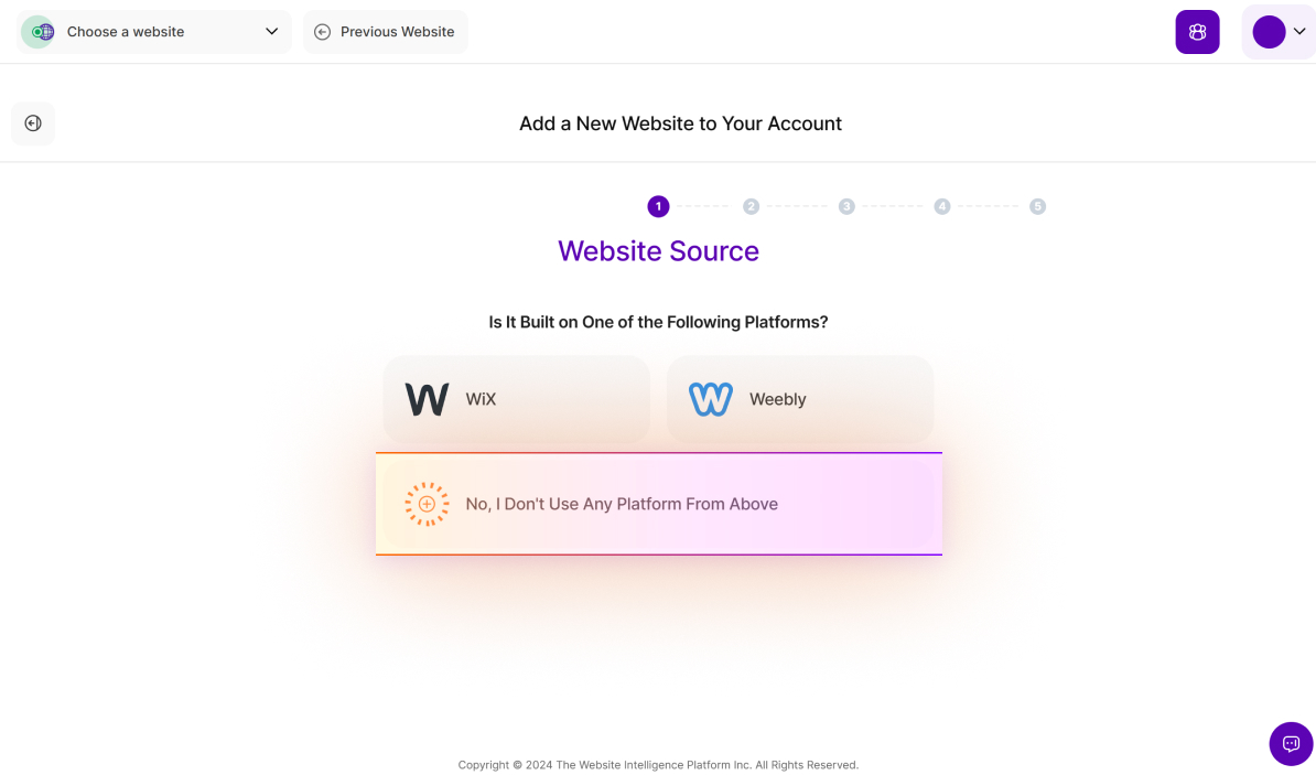 1. Melden Sie sich hier bei Ihrem bestehenden Konto an. Klicken Sie auf das Dropdown-Menü in der oberen linken Ecke und wählen Sie Neue Website hinzufügen.