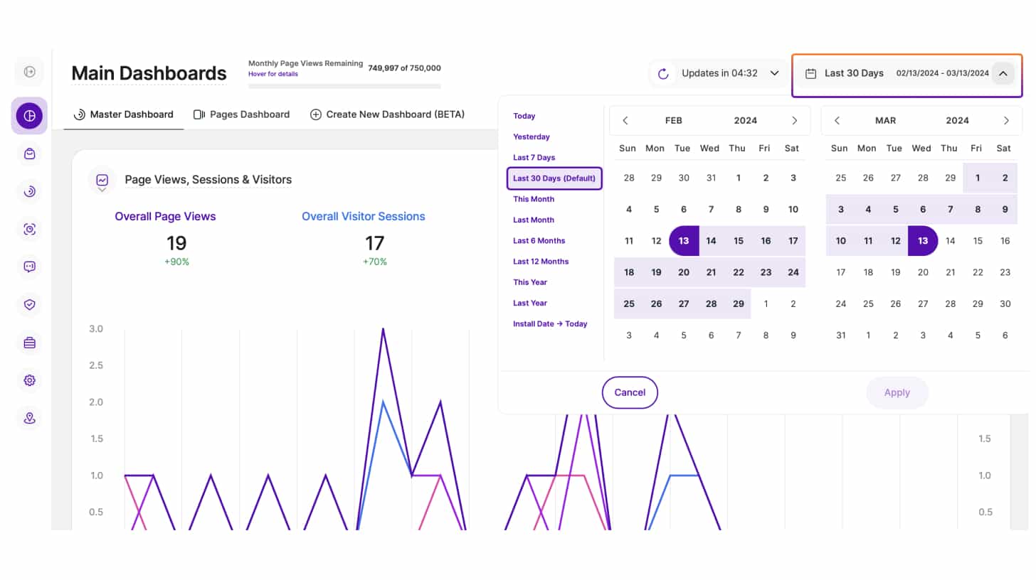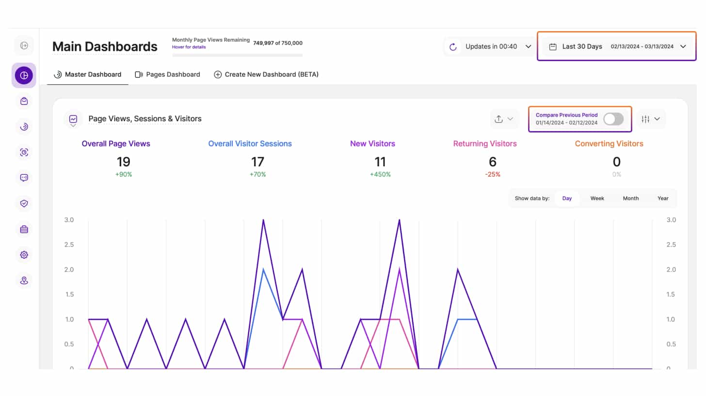 Wenn Ihr Unternehmen, Ihre Webseite und Ihr Online-Verkehr wachsen, können Sie flexibel entscheiden, wann Sie in den verschiedenen Abonnementpaketen aufsteigen (oder absteigen) möchten. Jede Stufe bietet mehr Datenerfassung, erweiterte Analysefunktionen und verbesserte Kommunikationstools, um Ihre wachsenden Anforderungen zu erfüllen.