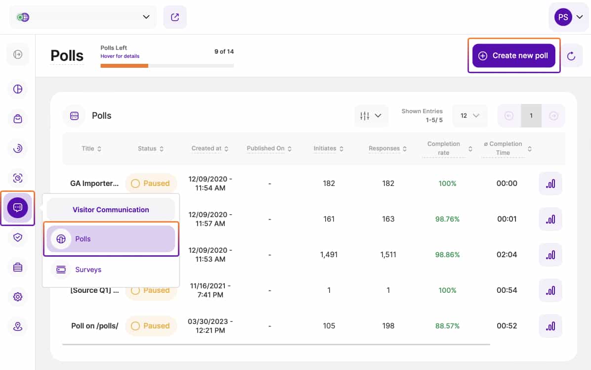 • Gehen Sie zu Besucherkommunikation im vertikalen linken Menü und klicken Sie auf Umfragen.