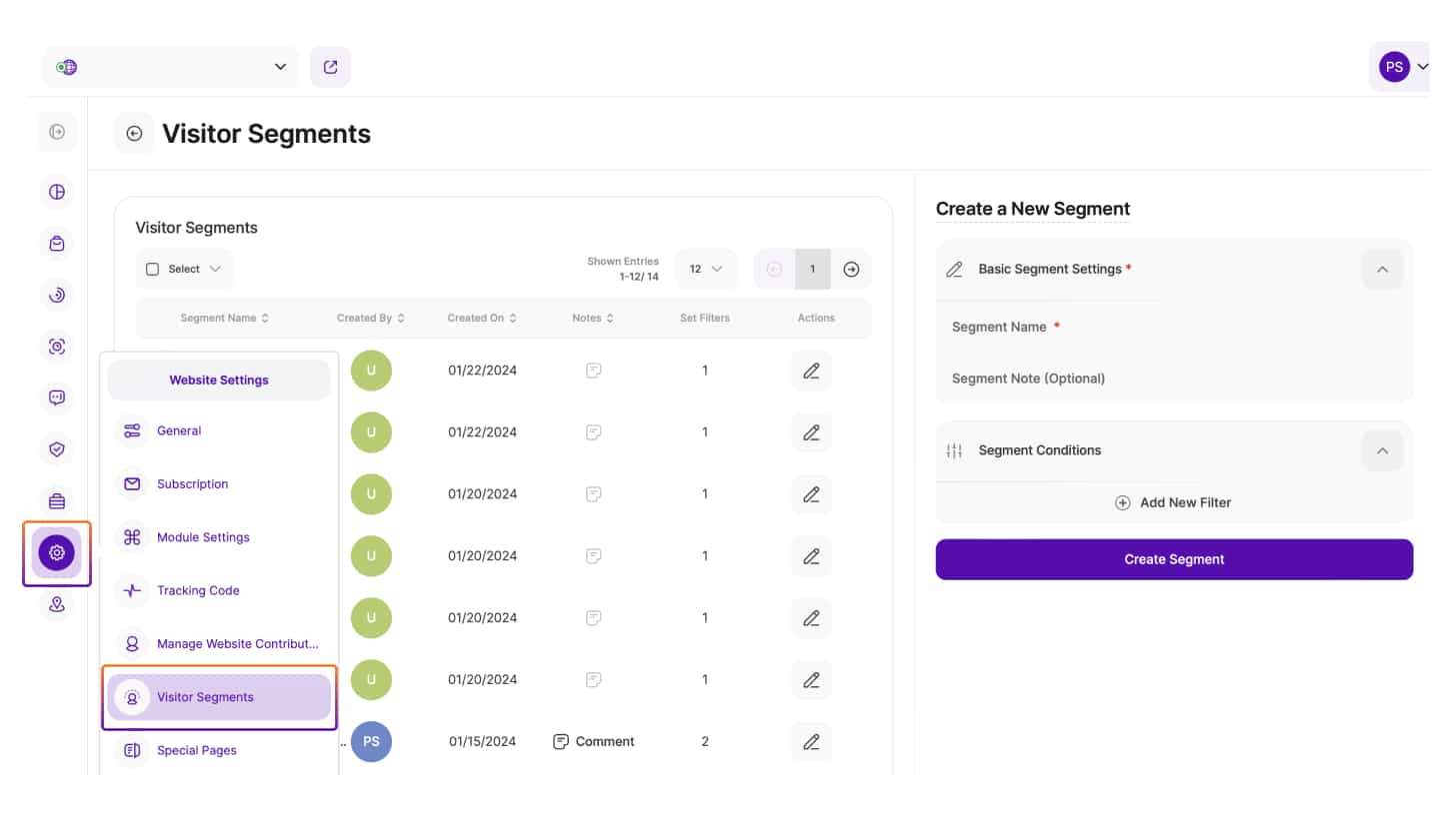 • Gehen Sie zu Besucherkommunikation im vertikalen Menü auf der linken Seite und klicken Sie auf Umfragen.