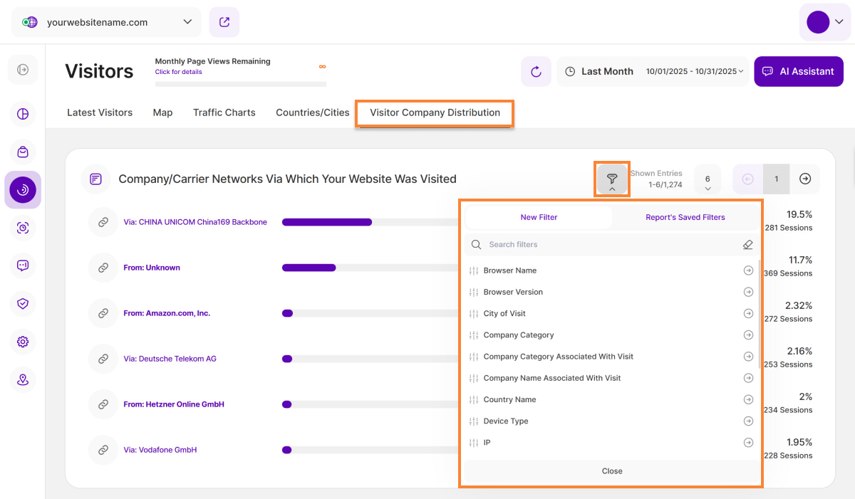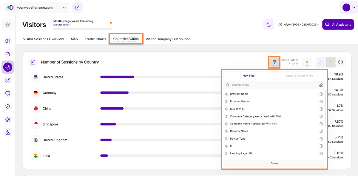 - Filter Icon: Allows you to apply various filters for a more focused analysis of visitor data.